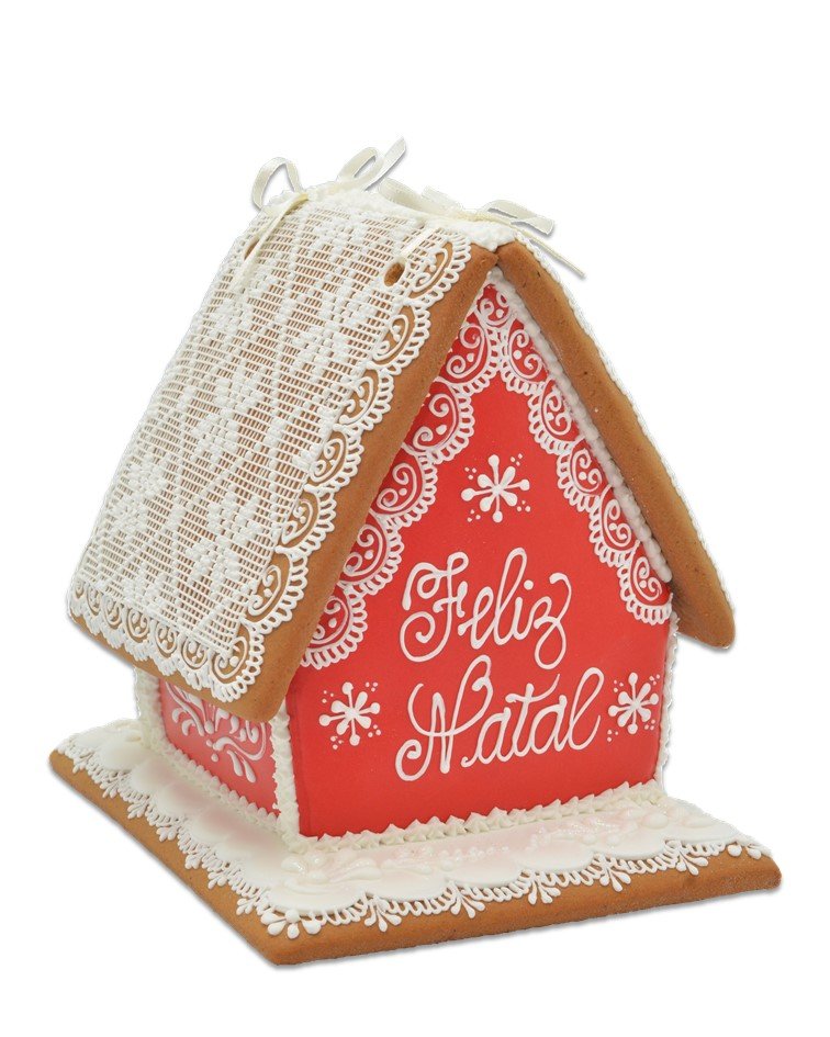 Ingredientes: Farinha de Farinha de trigo enriquecida com ferro e ácido fólico, açúcar de confeiteiro (açúcar refinado e amido de milho), açúcar, mel, ovo, clara de ovo, margarina 80% lipídios (óleos e gorduras vegetais totalmente hidrogenadas e interesterificadas, água, sal hipossódico, creme de leite, emulsificante: mono e diglicerídeos de ácidos graxos, lecitina de soja e poliglicerol polirricinoleato, conservantes: sorbato de potássio, acidulante: ácido cítrico, aromatizante: aroma idêntico ao natural, antioxidantes: TBHQ e EDTA cálcico dissódico, corantes: urucum e cúrcuma, Bacillus thuringiensis, Streptomyces vitidochromogenes e Agrobacterium tumefaciens, Zeamays), açúcar impalpável (açúcar, amido de milho e fécula de mandioca), melado, bicarbonato de sódio (INS500ii), amido modificado, chocolate em pó, limão, sal amoníaco, açúcar de baunilha (açúcar e aromatizante), sal, noz moscada, sorbato de potássio (INS202), corantes artificiais vermelho 40 (INS129), tartrazina (INS102), dióxido de titânio (INS171), amarelo crepúsculo (INS110), azul brilhante FCF (INS133), óxido de ferro preto (INS171i), ponceau 4R (INS124), eritrosina (INS127), indigotina (INS132), metabissulfito de potássio (INS224), espessantes goma carragena (INS407) e goma jataí (INS 410). CONTÉM GLÚTEN.CONTÉM LACTOSE. ALÉRGICOS: CONTÉM DERIVADOS DE SOJA E LEITE. PODE CONTER OVO E LEITE. COLORIDO ARTIFICIALMENTE.