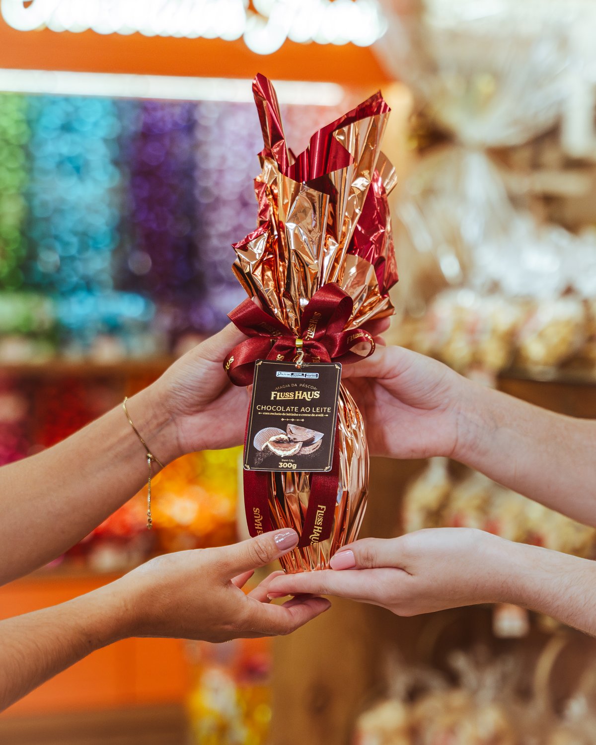 Sabor: Chocolate ao Leite com Recheio Leitinho e Creme de Avelã