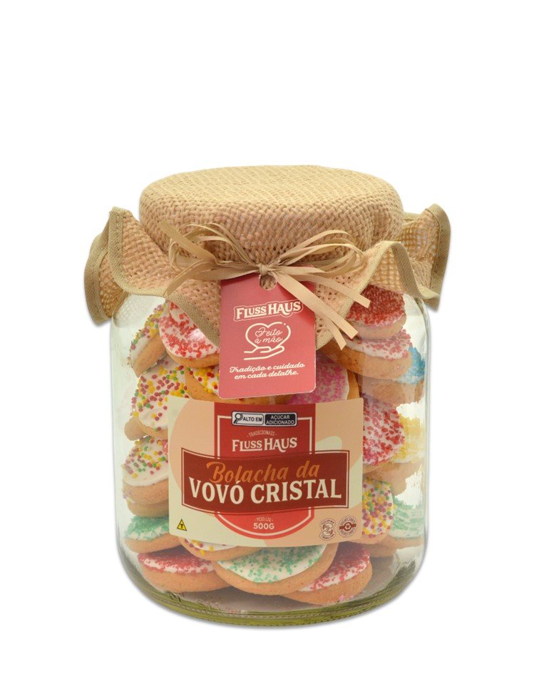Aquela bolacha mais tradicional com uma deliciosa cobertura de glacê e confeitos, numa embalagem de vidro para presentear ou decorar a sua cozinha.