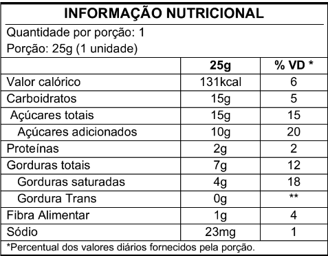 CONTÉM AÇÚCAR. ALÉRGICOS: CONTÉM DERIVADOS DE OVO E SOJA. PODE CONTER LEITE. PODE CONTER AMENDOIM, AMÊNDOA, CASTANHA-DE-CAJU, CASTANHA-DO-PARÁ, AVELÃ, AVEIA, CEVADA, CENTEIO, TRIGO.
